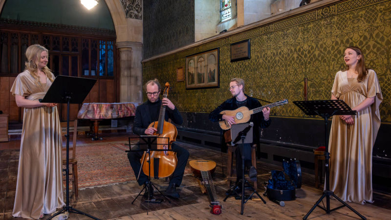 Fair Oriana delighted our audience with a dazzling performance of early music resurrecting the spirit of the dazzling courts of late Renaissance Italy. Sopranos Angela Hicks and Penelope Appleyard accompanied by Harry Buckole, viola da gamba and Jonatan Bougt, theorbo, brought a breathtaking celebration of concerto delle donne to The Painted Church. Photographs: Gyles Glover
