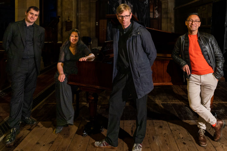 March 2025 Peter Mallinson and Matthias Wiesner with pianist Lynn Arnold and composer Raymond Yiu. Photo: Faruk Kara