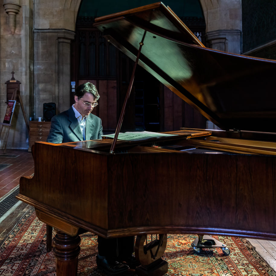 March 2024 Hannah Watson Emmrich brought us a wonderful programme of all female composers to celebrate International Women's Day. Hannah is pictured with our beautiful Broadwood piano in the foreground and Dominic Beattie's Window Painting 1 in the background, part of Revival, an exhibition running until March 24 at All Saints.